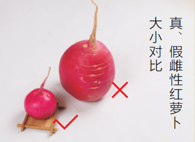 真的東北雌性紅蘿卜,每個(gè)重量只有2兩至5兩之間,而假冒的東北雌性紅蘿卜,一般都在半斤以上。目前網(wǎng)絡(luò)上出現(xiàn)大量的假冒雌性紅蘿卜均為農(nóng)貿(mào)市場上幾角錢一斤的普通菜蘿卜,并且根本無法保證沒有農(nóng)藥和化肥的殘留。