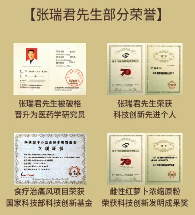 2020年,張瑞君先生因上述科研成果及科研成果轉(zhuǎn)化,被遼寧省科技廳和遼寧省人社廳破格晉升為醫(yī)藥學(xué)研究員,同時(shí)他還是正高級(jí)農(nóng)藝師,張瑞君先生是遼寧省第一位在兩個(gè)領(lǐng)域擁有高級(jí)職稱的高級(jí)技術(shù)人員,同年,他被沈陽市人社局評(píng)選為“高層次人才”。